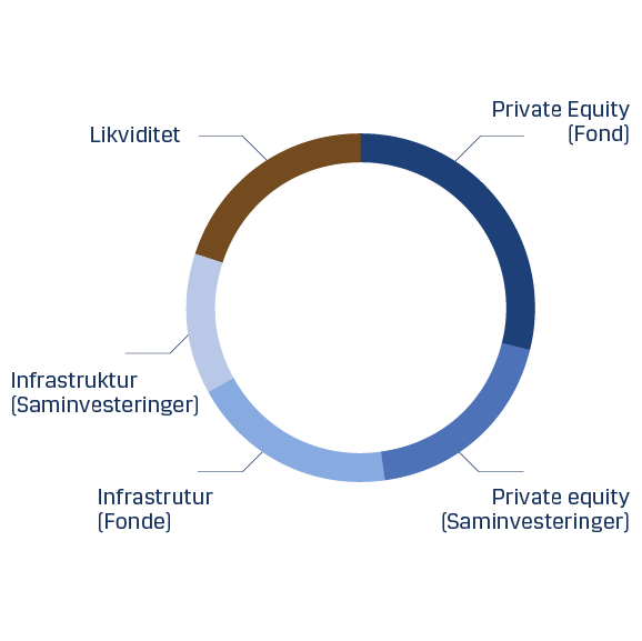 - Fondet investerer primært i private equity og infrastruktur innenfor en rekke temaer som anses å ha en positiv påvirkning på klimaet og et attraktivt økonomisk potensial i årene som kommer.